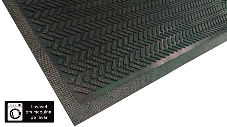 Tapete construído 100% em borracha moldada com ação antiderrapante.